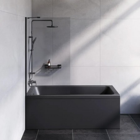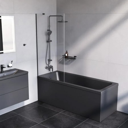 W90UBS-080-140BM Gem шторка на борт ванни 80х140, фіксована, профіль чорний, скло матове (1 сорт)