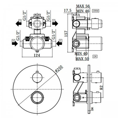 LIQ019CR Light exclusive Змішувач для душу на 3 споживачі, термостатичний, хром (1 сорт)
