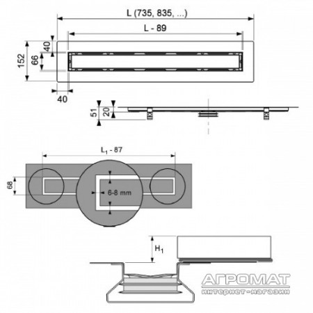 650800 Канал зливний прямий TECEdrainline довжина 835 мм, для натурального каменю (1 сорт)