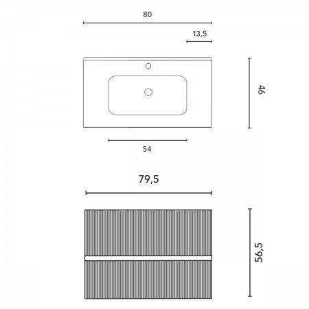 131769+126224 Тумба VORA 80 2 ящ, + раковина біла ENZO, MINERAL GREEN (1 сорт)