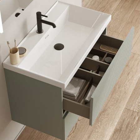 131775+131454 Тумба VORA 100 2 ящ, зі стільницею, MINERAL GREEN (1 сорт)