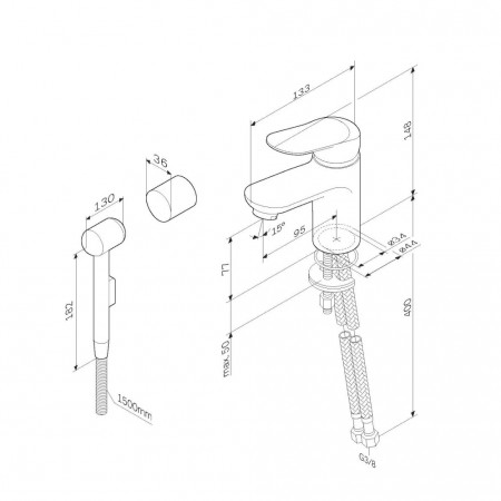 F85C03000 Sunny, змішувач для умивальника з гіг.душем, хром (1 сорт)