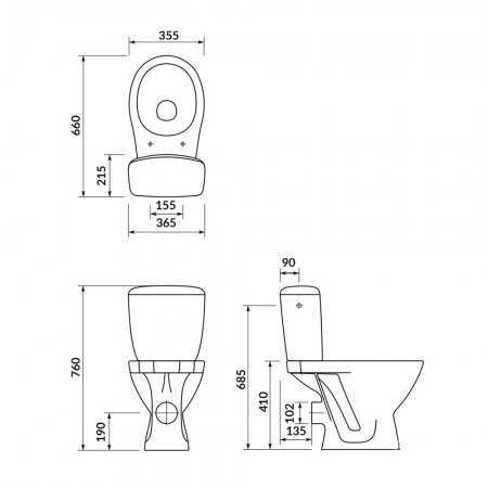 K08-028-EX3 Компакт PRESIDENT P010 3/6L кришка поліпр, гор.злив, боковий підвід, білий глянець (1 со