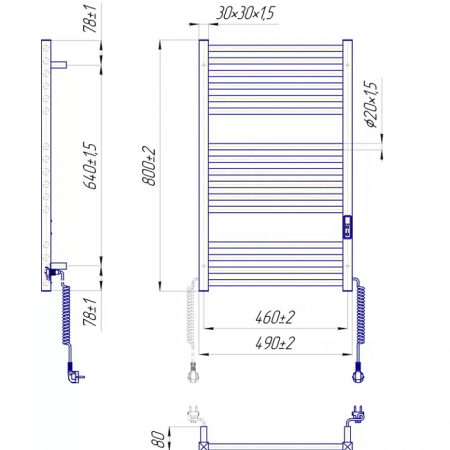 2.2.1802.03.P Рушникосушка Гера-I 800х500/80 електр. TR К, Полір.нержав. (1 сорт)
