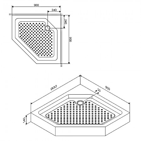 W90UT-405-090BT 5-кутовий душовий піддон Gem 90x90, білий (1 сорт)