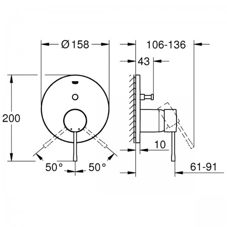 24168001 Essence New Одноважільний змішувач для душу, зовнішня частина, хром (1 сорт)