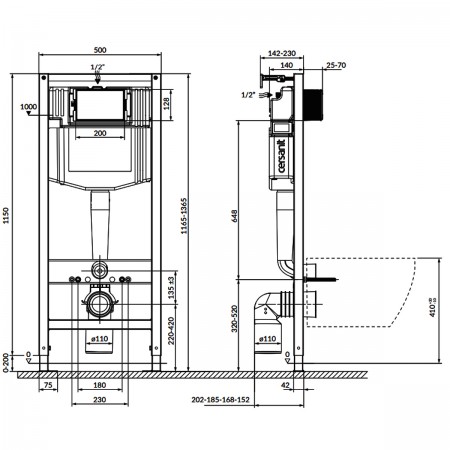КОМПЛЕКТ C26: ІНСТАЛЯЦІЯ AQUA 50 QF МЕХАНІЧНА + ПІДВІСНИЙ УНІТАЗ VIRGO CLEANON З ТУАЛЕТНИМ СИДІННЯМ