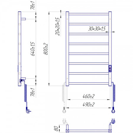 2.2.1702.03.P Рушникосушка Токіо-I 800х500/80 електр. TR К, Полір.нержав. (1 сорт)