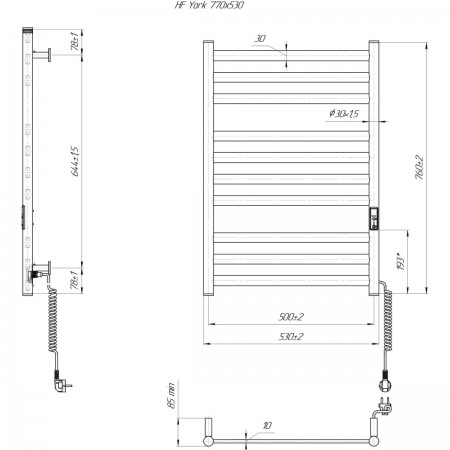 6.1.0501.06.BM Рушникосушка ел. HF York 770х530 чорний мат, в комплекті з прих.підкл (1 сорт)