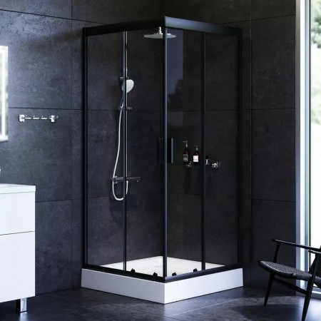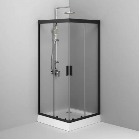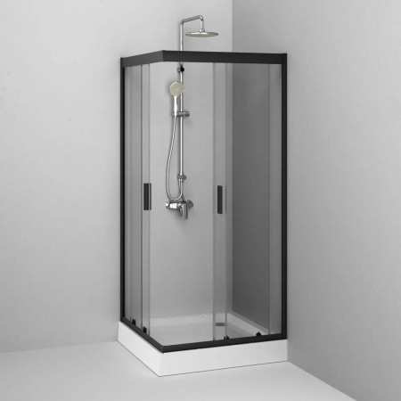 W90UG-403-090BT Душова кабіна Gem Square Slide 90x90 скло прозоре, профіль чорний матовий (1 сорт)