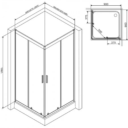 W90UG-404-090MT Душ. кабіна Gem Square Pivot 90x90 (1 сорт)
