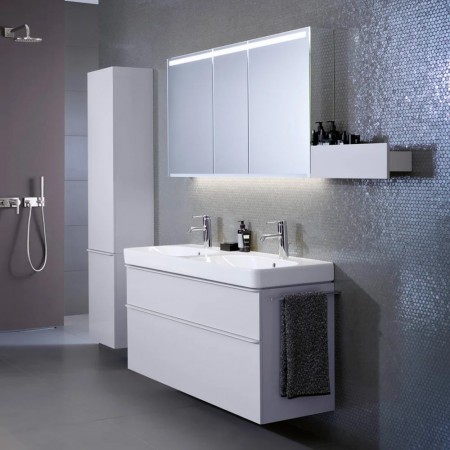 500.223.01.1 Geberit Smyle Умивальник меблевий 120см, 2 чаші, з 2 отворами під зміш., колір білий гл