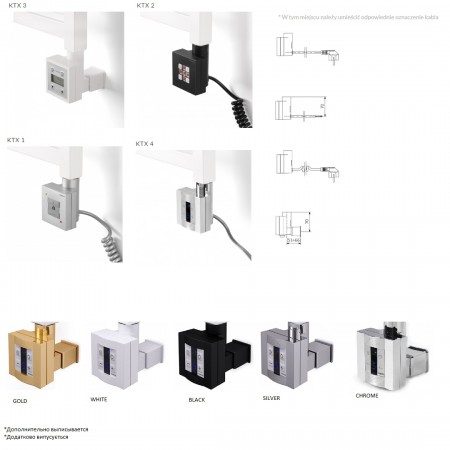 WLWAT111050K916E8TS1D Рушникосушка електрична Terma WARP T 1110*500 ,колір RAL 9016 (білий глянець),