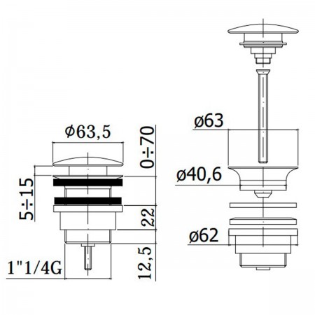 ZSCA050ST донний клапан ,“Clic-Clac”, нерж. сталь (1 сорт)