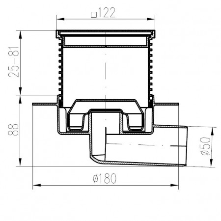 G 425 NXL Двокорпусний трап з гор. підключенням DN50, h-113-169 mm, решітка Квадрати, з сухим сифоно