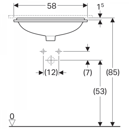 500.764.01.2 VariForm Умивальник прямокутний, 50х40см, що монтується під стільницю, без отв. під змі