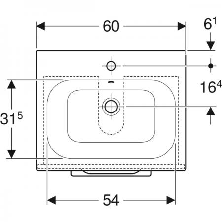 500.995.00.1 Вбудовуваний умивальник Geberit Selnova Square 80см, отвір для змішувача в центрі, пере
