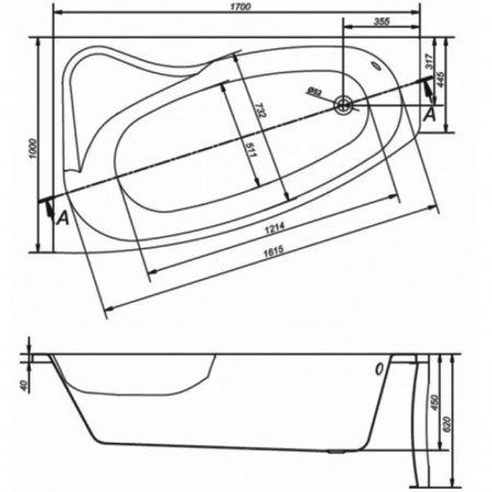S301-098 SICILIA NEW Ванна асиметрична 170х100 правостороння (1 сорт)