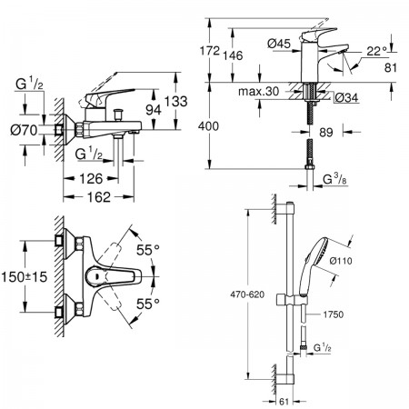 UA121624S1 Bau Flow Комплект змішувачів для ванни (3 пак) (1 сорт)