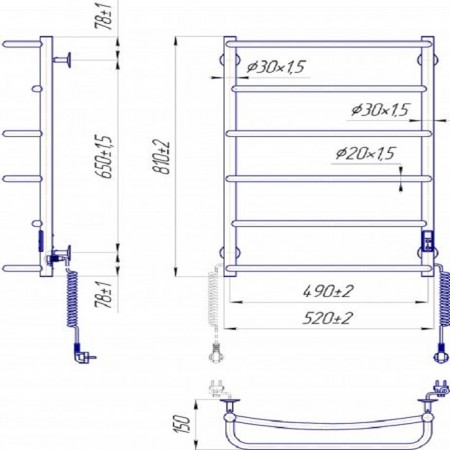 2.3.0315.10.P Рушникосушка електр. Люкс НР-І 800х530/150 електр. TR К (1 сорт)