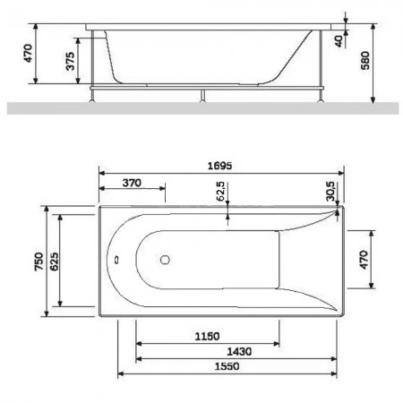 W72A-150-070W-P2 панель фронтальна для ванни spirit 150х70 (1 сорт)