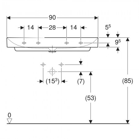 505.021.01.3 ONE Умивальник -90см, вертикальний випуск, без отв.під зміш., без переливу, покриття Ke