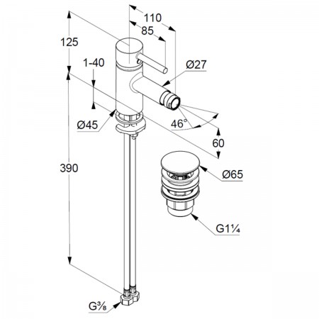 38533N076 KLUDI BOZZ Змішувач для біде з донним клапаном PUSH-OPEN, брашоване золото (1 сорт)