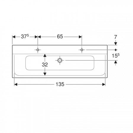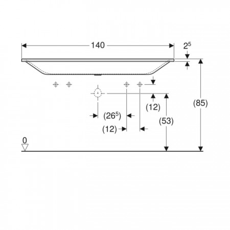 500.277.00.1 Xeno2 Раковина 140 см із Varicor, що вбуд.в стільницю, з 2-ма отв. під зшіш. на два спо