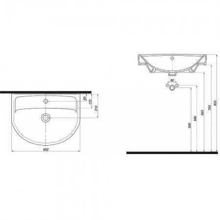 2321600UA STATUS Раковина 60 см, з переливом, з отв.для зміш по центру (1 сорт)