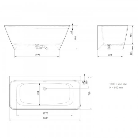 VAQUAWA/00 QUADRO WALL Ванна пристінна 160х76 см з литого (штучного) каменю, з інтегрованим сифоном,
