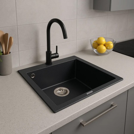 5050 GALAX Кухонна мийка гранітна 500*500, кріплення, чорна матова (1 сорт)