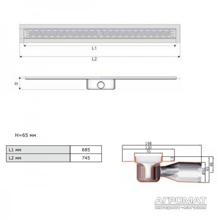 9010.88.22 (408722) Душовий канал з горизонтальним фланцем низький сифон 685мм (1 сорт)