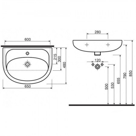 2196500U Nova Раковина меблева 65 см, з 1-отв. під зміш, з переливом, білий глянець (1 сорт)