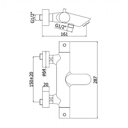 LEQ519СR LIGHT змішувач для ванни термостатичний прихованого монтажу, хром (1 сорт)