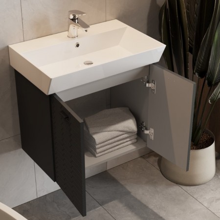 484060A Flow Тумба 60 з умивальником та ручками, антрацит матовий (1 сорт)