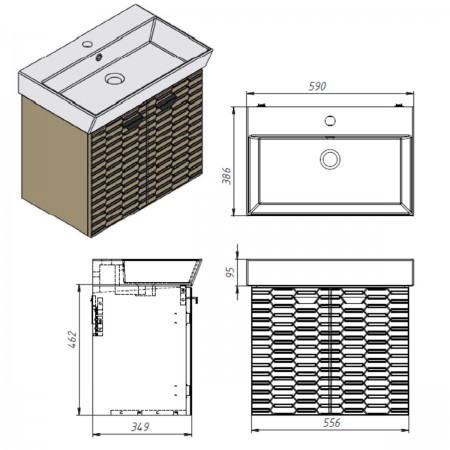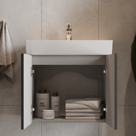 484060G Flow Тумба 60 з умивальником та ручками, сірий матовий (1 сорт)