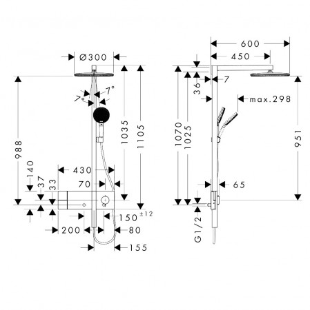 24630000 HG Raindance Alive S Душова система 300 1jet з термостатичним змішувачем та внутрішньою час