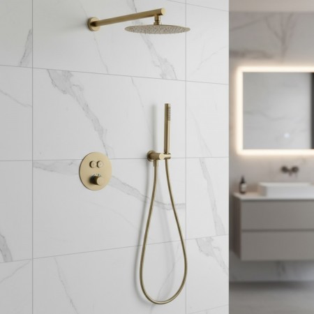 D117124011111BG Flow Душова система прихованого монтажу, на 2 споживачі, з термостатом, brushed gold