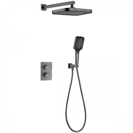 D117124011111GM Flow Душова система прихованого монтажу, на 2 споживачі, з термостатом, gun metal (1