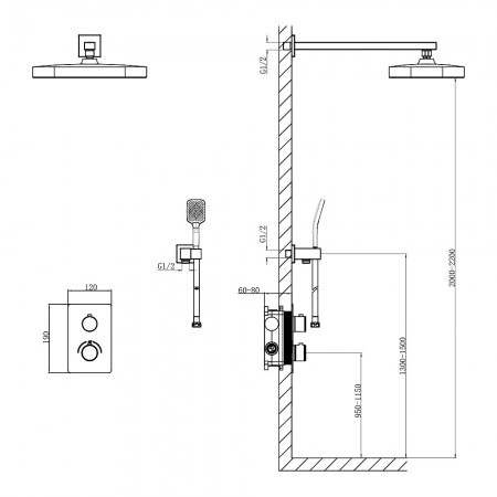 D117125011221GM Flow Душова система прихованого монтажу для душу, на 2 споживачі, з термостатом, gun