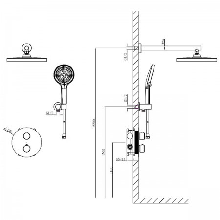 D117134011221C Flow Душова система прихованого монтажу для ванни/душу, на 3 користувача, з термостат