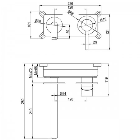 550537MB Flow Змішувач для раковини прихованого монтажу, чорний матовий (1 сорт)