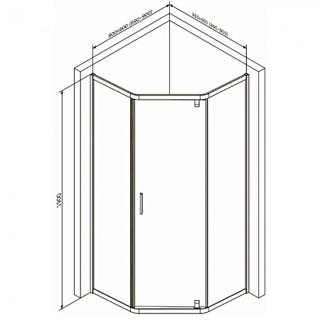 W90UG-405-090MT Душ. кабіна Gem 5-corner Pivot 90x90 скло прозоре,хром, без піддону (1 сорт)