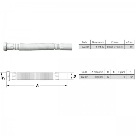 022331 Гофра для сифонів під раковини, 800-370 мм, 1/4X32 (1 сорт)