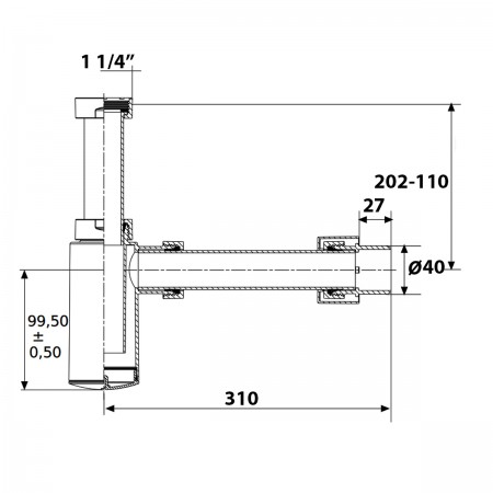 DEV001586 дизайн сифон для раковини, хром, підключення 1/4'', випуск d32/d40 (1 сорт)