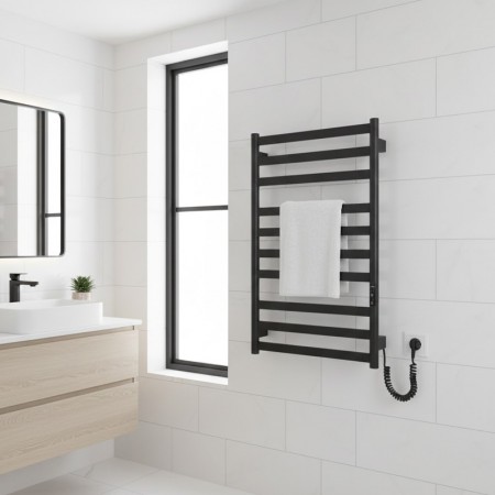 6.1.0501.06.BM Рушникосушка ел. HF York 770х530 чорний мат, в комплекті з прих.підкл (1 сорт)