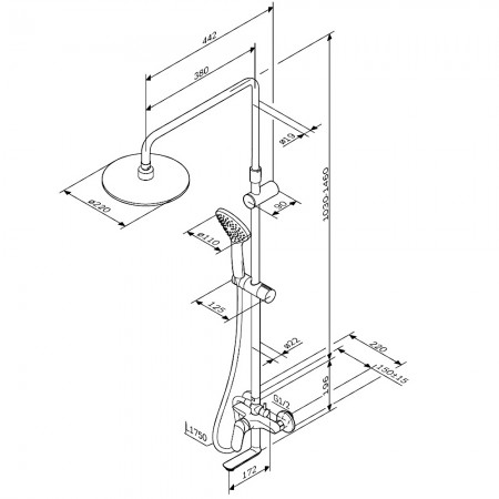 F0785C922 Sunny,душ.система,набір:зм-ч д/ванни/душу,верх душ d220 мм, ручний душ 110 мм, 1 функція,