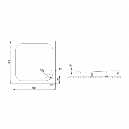 BAS1090 BASIC Душовий піддон, квадратний 900x900 без сифона (1 сорт)
