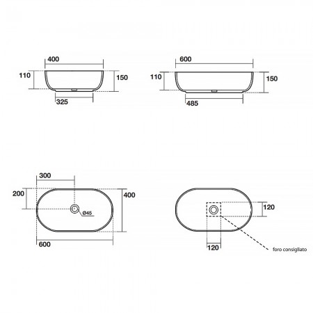 5343 31 Nolita Раковина на стільницю 60*40, чорний матовий (1 сорт)