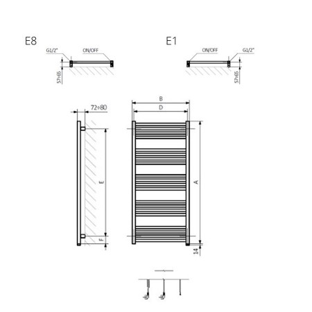 WWFIE090050K9M5E8P Рушникосушка електрична Terma Fiona One 900*500, колір чорний мат (RAL 9005), при
